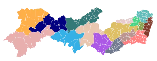 El estado de Pernambuco es divido geográficamente en 19 microrregiones: