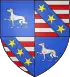 de plata, a una aplanadora de sable puesta en banda, acompañada de seis rosas de gules ordenadas en orla, que es de la Familia de Damas-Jouancy