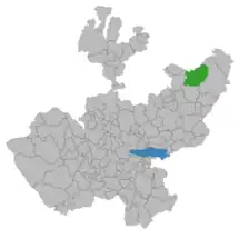 | 016 | Ayotlán | Ayotlán | 1824 | Ayotl ‘calabaza’ y tlan ‘lugar’: ‘Lugar de calabazas’.[nota 3] | 37 963 | 41 552 | 431,04 | ![]() | ||