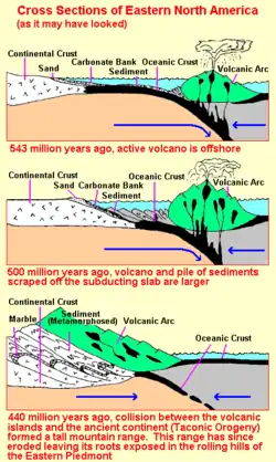 - orogenia tacónica: : un período de construcción de montañas que afectó a la mayor parte de Nueva Inglaterra.