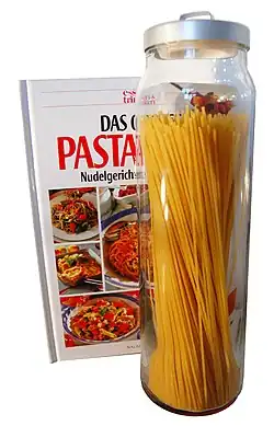 Espagueti | Pasta larga y fina hecha de sémola o harina | Deriva de spago, cuerda delgada | |