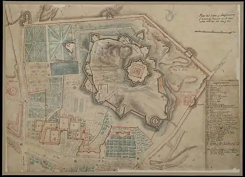 | Mapa de Madrid con fortificaciones ejecutadas[9] | 1837 | El plano realizado por el ingeniero militar Luis Balaurat detallaba a las fortificaciones de Madrid y sus alrededores para defender la Villa ante un previsible ataque del ejército carlista durante la primera guerra carlista.[10] | ||