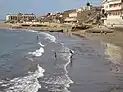 Una playa es un depósito de sedimentos no consolidados que varían entre arena y grava, excluyendo el fango ya que no es un plano aluvial o costa de manglar, que se extiende desde la base de la duna o el límite donde termina la vegetación hasta una profundidad por donde los sedimentos no se mueven.[6]