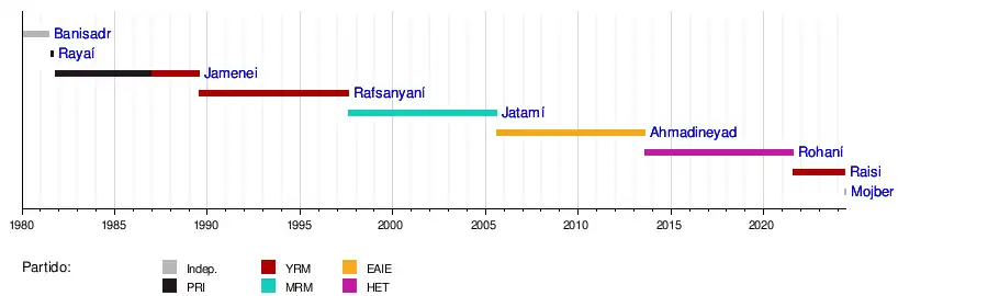 Consejo Presidencial Provisional | 30 de agosto de 1981 | 13 de octubre de 1981 | Liderado por Mohammad Reza Mahdavi Kani | - | Mohammad Reza Mahdavi Kani (1981) | ||||