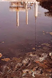 Instalación petrolífera reflejada en un estanque contaminado, Grand Isle (Louisiana, Estados Unidos, 1972).