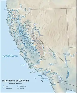 Este artículo trata sobre los ríos más largos del estado de California, en los Estados Unidos y quiere recoger, en forma de tabla, todos los ríos y afluentes principales de más de 100 km de longitud. En este artículo se consideran los cursos de agua por su longitud, con independencia del nombre que tengan los diferentes tramos. En Estados Unidos es muy común que diferentes tramos de un mismo río tengan nombre diferente, e incluso que en el curso alto, las fuentes no tengan nombre, recurriendo a nombrarlas como ramales o bifurcaciones (por ejemplo, East Fork sería el ramal este).