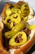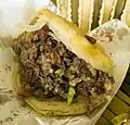 | Cheesesteak | Carne cortada en tiras finas con queso derretido en un pan alargado. También se lo conoce como Philadelphia cheesesteak o Philly cheesesteak. | [6] | |||
