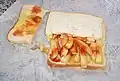 Gratinado con pan blanco, lleva salchicha bratwurst, cebolla, ketchup, mostaza y curry. | [10] | |