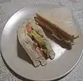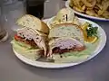Realizado con tres rebanadas de pan, pollo o pavo en rebanadas, panceta, tomate, lechuga y mayonesa. | [7] | ||