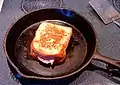 Sándwich abierto con queso cheddar y mantequilla, grillado. | |||