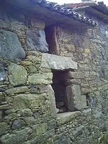 La trasera de la vivienda da a la huerta, en donde no falta el hórreo, todo de madera (cabazo) o mixto (granito más madera de castaño), imprescindible para secar y conservar el maíz. La huerta de la casa ha sido y aún es fuente de recreo y espacio de recursos (Rodríguez Dacal, 1994), constituyendo un aporte a la economía doméstica.[14]