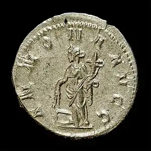 Annona también aparece en las monedas emitidas bajo Vespasiano, donde junto con otra Virtudes representaron la restauración de la confianza en el principado, y en las acuñaciones de Tito, Domiciano, Trajano, Adriano, Antonino Pío y Septimio Severo.[6] Fue la particular favorita en la propaganda de Trajano, que pretendía destacar su reinado como una nueva era de renovación y prosperidad para la humanidad. En este caso, Annona aparece a menudo con un niño simbólico.[7] En el contexto de la política de Trajano, Annona representó la independencia de grano de Roma sobre su tradicional proveedor, Egipto.[8]