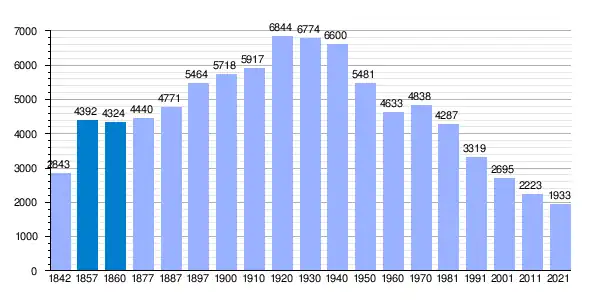 | Gráfica de evolución demográfica de Antas de Ulla[4] entre 1842 y 2021 |