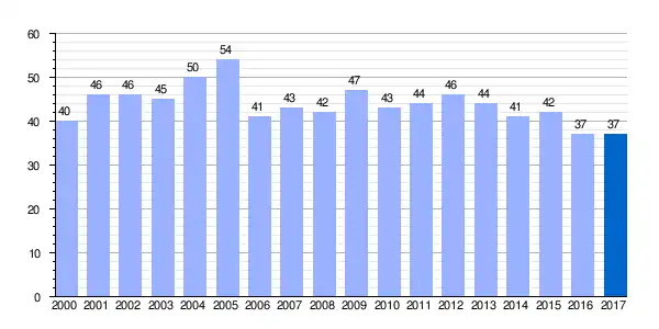 | Gráfica de evolución demográfica de Antezana de la Ribera[2] entre 2000 y 2017 |