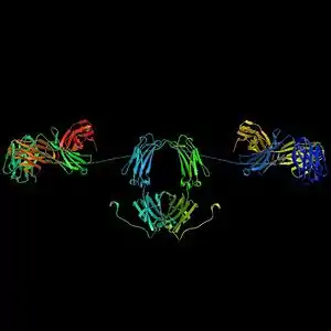 - Por las mismas fechas, Rodney Porter caracterizó las regiones de unión del anticuerpo (Fab) y la cola del anticuerpo (Fc) en el tipo IgG.[16] Conjuntamente, estos científicos dedujeron la estructura y la secuencia completa de aminoácidos de la IgG, por lo cual recibieron ex aequo el premio Nobel de fisiología y medicina en 1972.[16]