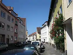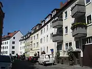 - Kaiserhaus (Casa de los Emperadores): Un edificio residencial construido entre 1585 y 1587 en estilo renacentista con una grande ventana en voladizo y con decoraciones en relieve de piedra y estatuas de los emperadores romanos en la fachada.[6] El entonces proprietario de la casa, un abogado bien acomodado, había escogido el estilo renacentista ya que había estudiado jurisprudencia en Bologna, una ciudad italiana que cuenta con muchos edificios de este estilo. La casa fue destruida por el bombardeo del 22 de marzo de 1945, pero varias esculturas fueron salvadas de la ruina y conservadas hasta que el Kaiserhaus fuese reconstruido en 1997. Se puede reconocer las partes salvadas integradas en la fachada ya que se pusieron grises o negras debido al fuego que siguió el bombardeo.