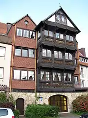 - Un gran mirador diseñado en 1568 con relieves en colores en estilo renacentista se ubica en frente del Kaiserhaus. Forma parte de una escuela. Originariamente era una parte de un edificio residencial en otra calle en el casco histórico que fue demolida a fines del siglo XIX. El mirador fue cuidadosamente partido en bloques, desmantelado en 1893 y reensamblado en una nueva ubicación en 1894 en una calle fuera del centro donde no fue destruido o dañado durante la guerra. Cuando la casa donde se hallaba fue derribada en 1971, el mirador fue desmantelado otra vez y reensamblado en la presente ubicación en 1972.[7]