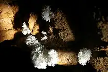 - Nota del traductor: en inglés el texto es «flower-like dripstone», por lo que la traducción directa no es posible ya que no hay una palabra para dripstone que se refiere de forma indiferente a una estalactita o una estalagmita.