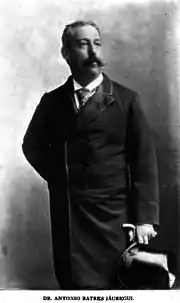 ![]() Licenciado Antonio Batres Jáuregui en 1896. Fotografía de La Ilustración Guatemalteca. | ||