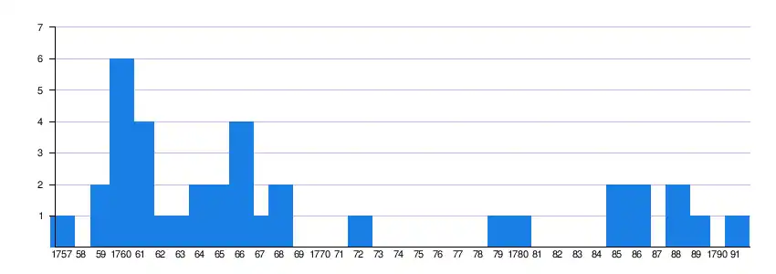 | Producción de libros de la imprenta de Antonio Castilla (1757-1791)[11] |