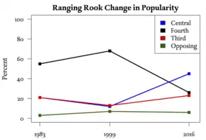 Más aún, estos dos tipos de avances de peón son los movimientos más comunes tanto para las negras como para las blancas (en cuyo caso serían 1... Peón-8d y 1... Peón-3d). Así pues, casi todas las partidas (más del 90%) empiezan con una de las cuatro posibles combinaciones de estos dos tipos de avances de peón (ver diagramas adyacentes).[1]