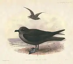 La pardela de las Kerguelen (Aphrodroma brevirostris) es una pequeña ave marina de la familia de los petreles o patines (Procellariidae). La especie fue descrita por mucho tiempo dentro del género Pterodroma antes de ser separada dentro de su propio género, Lugensa, en 1942. El género no fue ampliamente aceptado sino hasta 1985, cuando un estudio lo comprobó. La posición dentro de los proceláridos (familia Procellariidae) sigue siendo material de debate; cuando fue separada del género Pterodroma se sugirió que podría ser un petrel fulmar, mientras que en 1998 un estudio la colocó cerca de las pardelas y del género Bulweria.[2] Finalmente, en el año 2000 Storrs Lovejoy Olson la trasladó al género monotípico Aphrodroma.