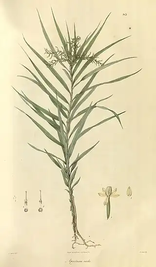 Apostasia nuda es una especie de orquídea de hábitos terrestres de la subfamilia Apostasioideae.[1]
