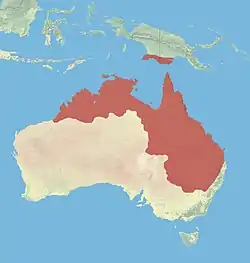Su área de distribución se extiende desde Pilbara, Australia Occidental, hasta la península del Cabo York, Queensland. Ocasionalmente se les avista en el sur de Nueva Guinea.[3]