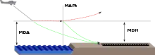 En una aproximación que no es de precisión (es decir, cuando no se proporciona una senda de planeo electrónica), la altitud mínima de descenso (MDA) es la altitud más baja, expresada en pies sobre el nivel medio del mar, a la que se autoriza el descenso en la aproximación final o durante el círculo para maniobras en tierra en ejecución de un procedimiento estándar de aproximación por instrumentos.[3] El piloto puede descender hasta la MDA y puede mantenerla, pero no debe descender por debajo de ella hasta que se obtenga una referencia visual, y deberá iniciar una aproximación frustrada, si la referencia visual no se ha obtenido, al alcanzar el punto de aproximación frustrada (MAP).