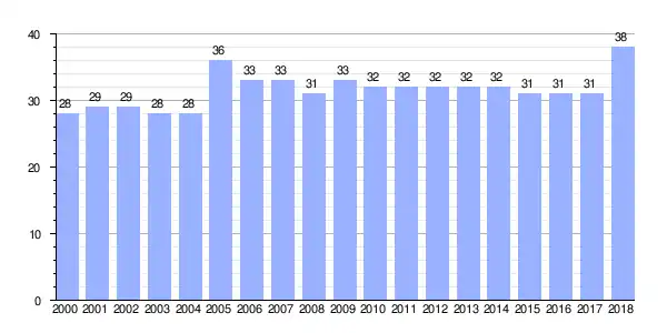 | Gráfica de evolución demográfica de Aquelavila entre 2000 y 2018 |