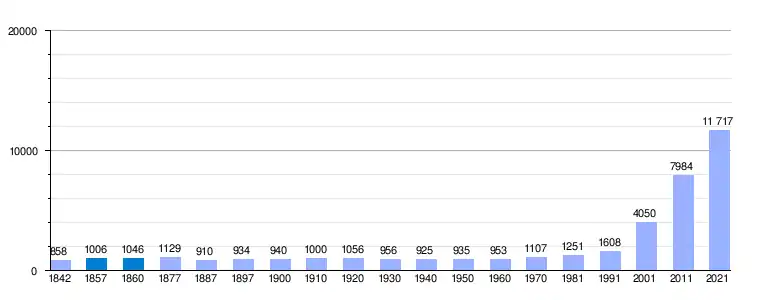 | Gráfica de evolución demográfica de Aranguren[4] entre 1842 y 2021 |