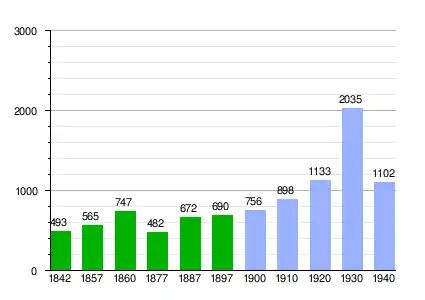 | Gráfica de evolución demográfica de Aravaca entre 1842 y 1940 |