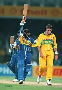 Aravinda de Silva (nacido el 17 de octubre de 1965) es un exjugador de críquet de Sri Lanka y capitán. De Silva ayudó a Sri Lanka a ganar la Copa Mundial de Críquet de 1996 y llevó a Sri Lanka del estado de desvalido a la forma actual. Ocupó varios puestos en Sri Lanka Cricket después de su jubilación en 2003. De Silva fue seleccionado como uno de los cinco jugadores de críquet Wisden del año en 1996 y uno de los cinco jugadores de críquet de Sri Lanka nombrados en la prestigiosa lista. La lista de Wisden de las 100 mejores actuaciones de bateo contiene seis entradas para él, solo una menos que el bateador de las Indias Occidentales Viv Richards.[1][2]