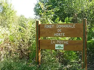 ![]() Entrada en Forêt domaniale de La Mothe-Clédou (también denominada forêt domaniale de Horte) por Combiers. | ||
