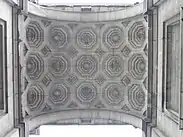 Los arcos transversales están coronados por una guirnalda de laurel en relieve, así como por una gran placa que iba a recibir un bajorrelieve, nunca realizado. Las bóvedas de cañón están realizadas con casetones, tanto octogonales como rectangulares, algunos decorados con el monograma del rey y unas siglas que se interpretan como «¡El Rey y la Ley y la Libertad!» (uno de los lemas de Bélgica).[6]