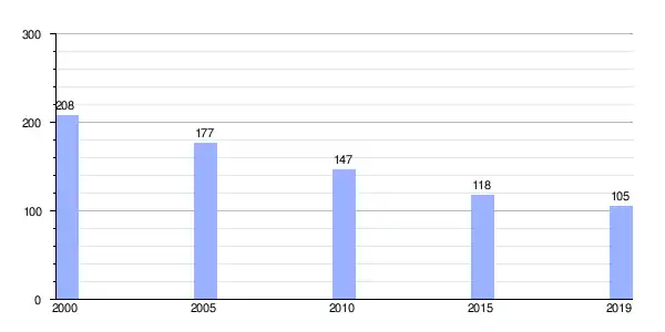 | Gráfica de evolución demográfica de Arcos (parroquia) entre 2000 y 2019 |