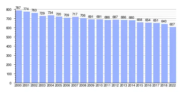 | Gráfica de evolución demográfica de Ardaña entre 2000 y 2022 |