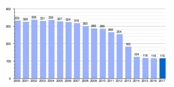 | Gráfica de evolución demográfica de Arechavaleta[8] entre 2000 y 2017 |