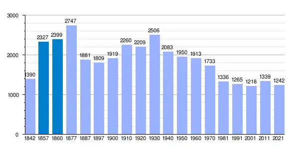 Población de derecho según los censos de población del INE. Población de hecho según los censos de población del INE.Entre el Censo de 1877 y el anterior, crece el término del municipio porque incorpora a 29504 (Daimalos).[3] |