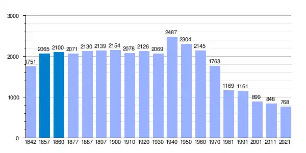 | Gráfica de evolución demográfica de Arganza[12] entre 1842 y 2021 |