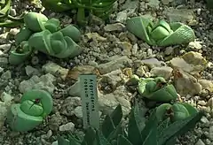 Es una pequeña planta suculenta que alcanza los 20 cm de altura y se encuentra en altitudes de 120 a 400 metros en Sudáfrica.