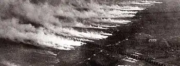 Posteriormente el Imperio alemán respondió perfeccionando la técnica, iniciando ya el uso a gran escala de gases letales por ambos bandos. En los comienzos simplemente se abría los recipientes de cloro a favor del viento y se dejaba que este la transportara hasta las filas enemigas. Poco después, los franceses modificaron su munición de artillería para contener fosfógenos, un método mucho más efectivo que se convirtió en el principal método para emplear estas armas.