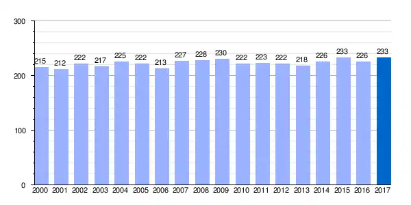 | Gráfica de evolución demográfica de Armentia[7] entre 2000 y 2017 |