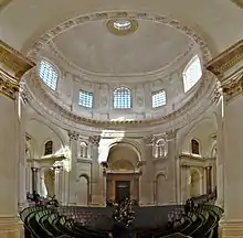 La principal innovación de la arquitectura religiosa barroca francesa fue la introducción de la cúpula o domo sobre la nave central, un estilo importado del barroco italiano. La cúpula de la iglesia del Gesù en Roma, de Giacomo della Porta (1568-1584) sirvió como modelo. La primera iglesia parisina en tener una cúpula fue la capilla cuya fachada ahora se encuentra en el patio de la École nationale supérieure des Beaux-Arts, en la rue Bonaparte en París. La siguiente cúpula, más grande, se construyó en la Iglesia Saint-Joseph-des-Carmes (1613-1620) en el mismo vecindario. François Mansart construyó una cúpula temprana más grande y aún más impresionante para la iglesia de la Visitación Saint-Marie (1632-1634).[18] Jacques Lemercier construyó otra cúpula innovadora para la capilla del Colegio de la Sorbona , a partir de 1635. Este diseño presentaba una cúpula hemisférica sobre un alto tambor octogonal, el primero de su tipo en Francia, con cuatro pequeñas cúpulas en los ángulos de la cruz griega sobre las columnas de orden corintio en la fachada.