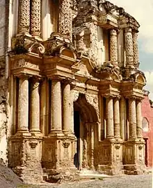 Proveniente de la palabra portuguesa barrueco,que significa impuro, abigarrado, extravagante, osado, el ejemplo más impactante del arte barroco novohispano se encuentra en la arquitectura religiosa, en la que los artesanos indígenas le dieron un carácter único, con una interpretación extremadamente expresiva del churrigueresco. Aún más que en su equivalente español, el barroco americano se desarrolló como un estilo de decoración del estuco.