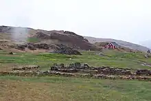 Los primeros vikingos desembarcaron en Groenlandia en el 982 guiados por Erik el Rojo, quien tuvo que huir de Islandia durante tres año tras ser proscrito. Se instalaron en lo que hoy es Qassiarsuk y fundaron varias aldeas también cerca de la actual Igaliku. Los islandeses emplearon técnicas de construcción nórdicas. Este tipo de arquitectura se basaba en granjas o haciendas bastante grandes construidas juntas. De esta forma, una misma estructura albergaba los establos, las viviendas y el espacio para el ganado. Esto traía la ventaja de que el calor de los animales ayudaba a calentar el edificio.[3]