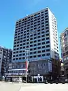 - Sede social del Real Club Celta de Vigo. Hasta el año 2015 fue sede del Círculo Cultural Mercantil e Industrial de Vigo, en la actualidad es la sede institucional del Real Club Celta de Vigo.[72] Los orígenes del edificio datan del año 1921, año en el que comenzaron las obras de rehabilitación de un antiguo inmueble a cargo del arquitecto Manuel Gómez Román para adaptarlo a las necesidades del Círculo Mercantil, posteriormente fue ampliado a cargo del propio Gómez Román en 1925. De estilo ecléctico con componentes clasicistas, en el que también destaca una galería que cubre el tramo central de la fachada,[75] sus elementos decorativos más destacados se encuentran en los capiteles de las pilastras y en las ménsulas que sustentan la galería.[76] Posteriormente, tras la adquisición del edificio por parte del Real Club Celta, se realiza una reforma al inmueble conforme al proyecto del arquitecto Alfonso Penela, entre los cambios acometidos destaca el añadido de una gran cúpula acristalada en su parte superior.[77]