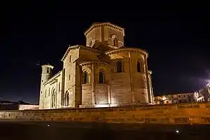 Las antiguas iglesias circulares o poligonales son relativamente raras. Un pequeño número, como la iglesia del Temple de Londres, se construyó durante las cruzadas imitando a la Iglesia del Santo Sepulcro. También existen ejemplos aislados en Inglaterra, Francia y España. En Dinamarca, estas iglesias de estilo románico son mucho más numerosas. En algunas partes de Europa del Este también hay iglesias con forma de torre redonda del período románico, pero generalmente son de arquitectura vernácula y de pequeña escala. Sin embargo, otros templos, como la iglesia redonda de San Martin en Visegrado, en la República Checa, están finamente detallados.[16]