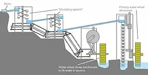 Rueda de Falkirk, molino hidráulico escocés recuperado en 2002 (aspecto en 2004).