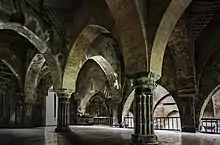 Los tughlaq tenían un cuerpo de arquitectos y constructores gubernamentales, y en éste y otros roles emplearon a muchos hindúes. Dejaron muchos edificios y un estilo dinástico estandarizado.[13] Se dice que el tercer sultán, Firuz Shah (r. 1351-88), diseñó él mismo los edificios y fue el gobernante más largo y el mayor constructor de la dinastía. Su complejo del palacio Firoz Shah (iniciado en 1354) en Hisar, Haryana es una ruina, pero algunas partes están en buenas condiciones.[15] Algunos edificios de su reinado adoptan formas que eran raras o desconocidas en los edificios islámicos.[16] Fue enterrado en el gran Complejo Hauz Khas en Delhi, con muchos otros edificios de su época y del Sultanato posterior, incluidos varios pequeños pabellones con cúpulas sostenidos únicamente por columnas.[17]